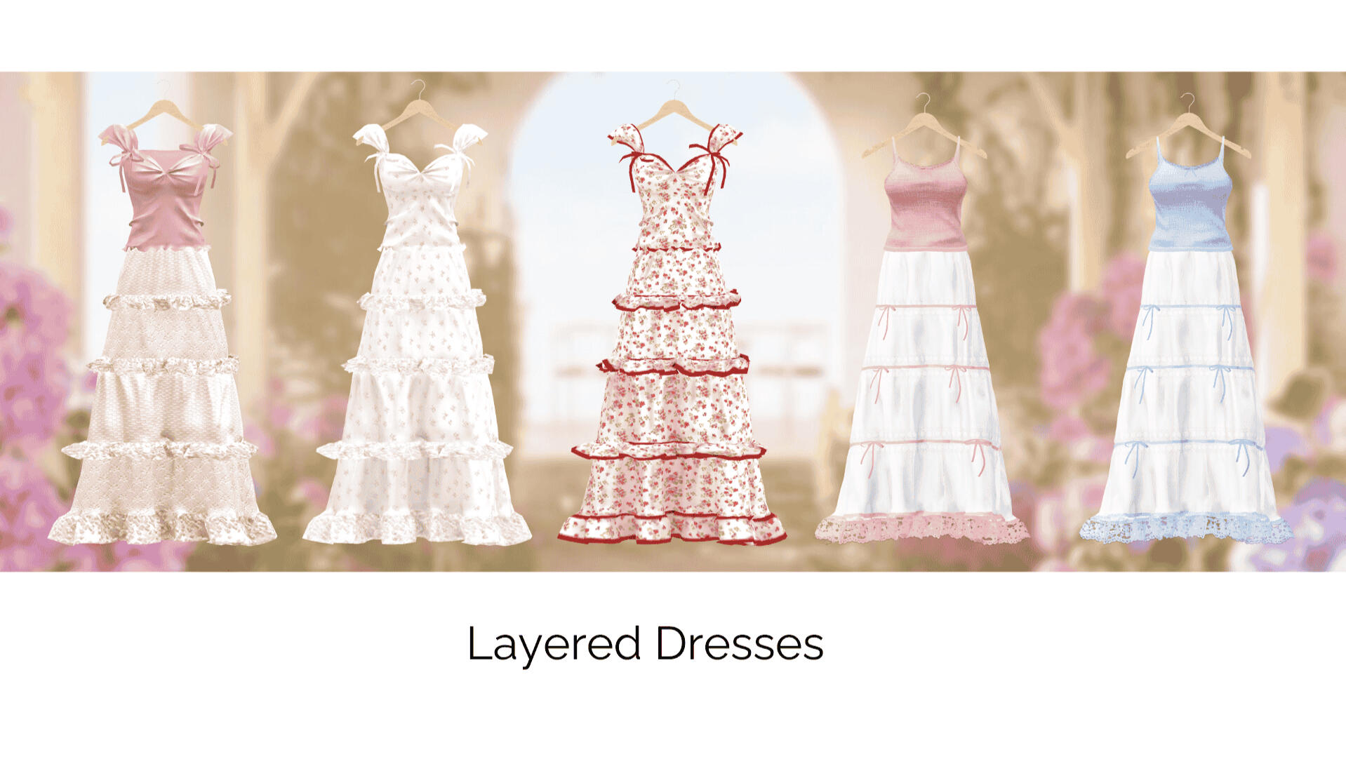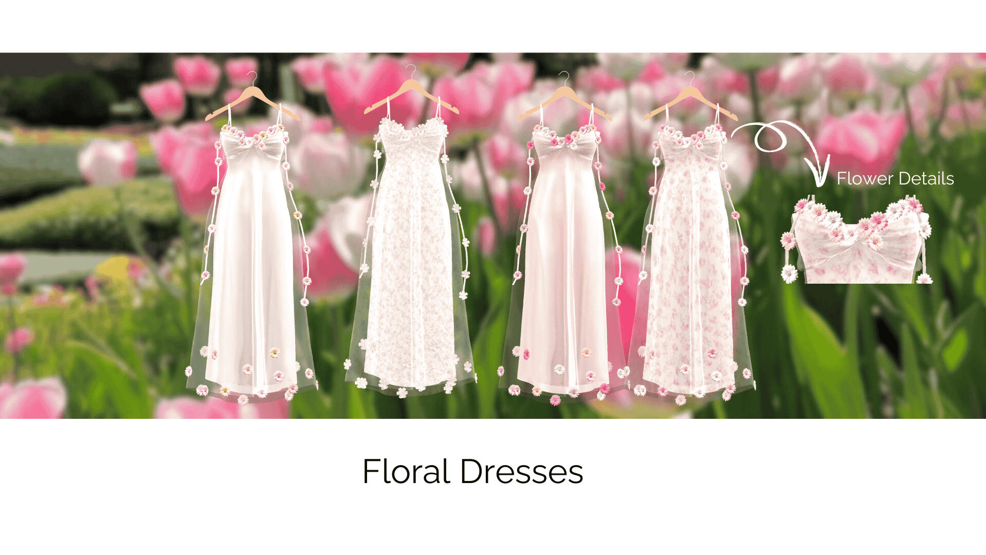 Step into summer with this vibrant collection! With breezy silhouettes and charming flower accents, these dresses are designed to celebrate the warmth and beauty of sunny days. Whether you’re attending a virtual garden party or just exploring your digital world, this collection adds a touch of timeless style and summer magic to your avatar’s wardrobe.